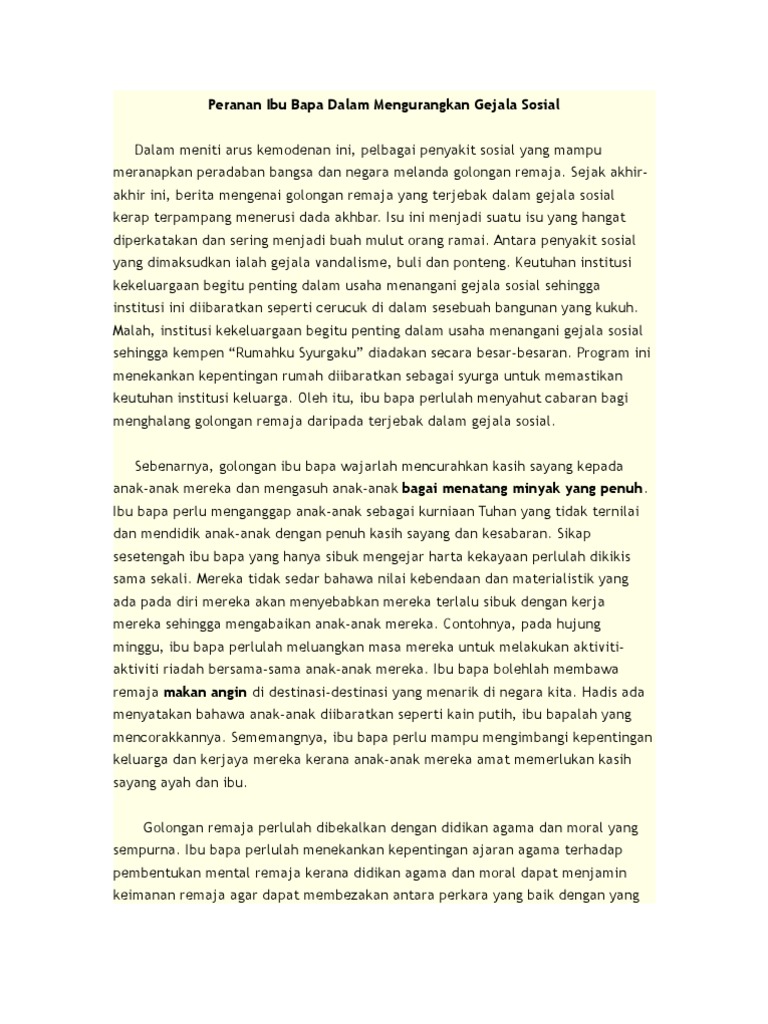 Peranan Ibu Bapa Dalam Mengurangkan Gejala Sosial Pdf